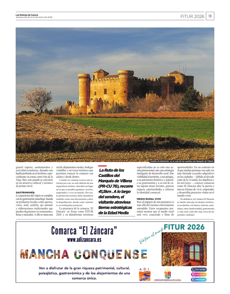 Con motivo de su inauguración, y aprovechando que mañana se celebra el Día de Cuenca, os dejamos por aquí el artículo que desde ADI "El Záncara" hemos publicado en el especial que el periódico "Las Noticias de Cuenca" ha preparado. Un escaparate inmejorable para seguir impulsando la visibilidad de nuestra comarca y poner en valor la riqueza y el potencial de nuestro territorio.