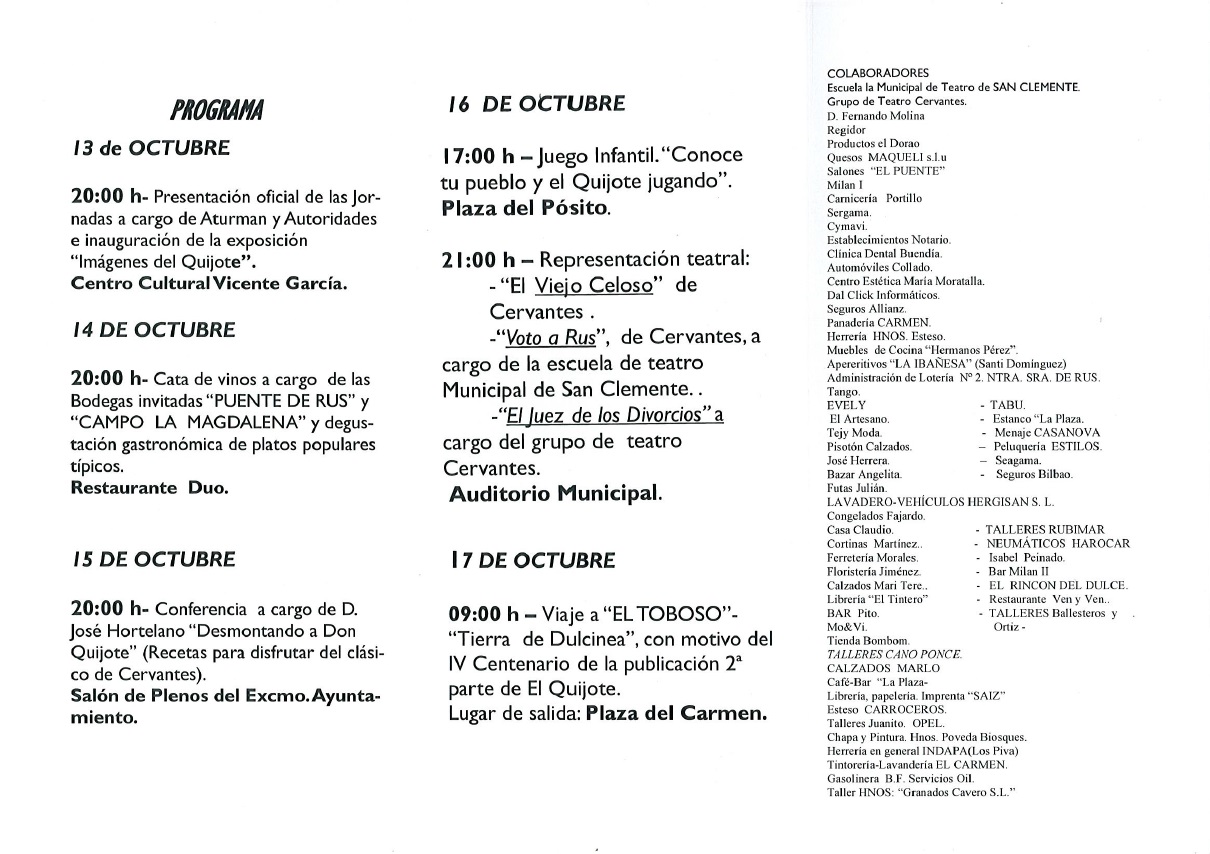 Del 13 al 17 de octubre en San Clemente (Cuenca) se celebran las XI Jornadas de Turismo Rural: Historia, vino y gastronomía. Organizadas por ATURMAN: Asociación de turismo rural de la Mancha.